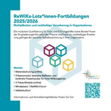 Die Fortbildung qualifiziert die Teilnehmenden, das wissenschaftlich evaluierte ReWiKs-Medienpaket einzusetzen, organisationsinterne Entwicklungsprozesse zur sexuellen Selbstbestimmung anzustoßen und als Multiplikator*innen zu wirken. Einrichtungen profitieren von erprobten Materialien, einem strukturierten Veränderungsfahrplan und erhöhter Handlungssicherheit, während die Teilnehmenden ihre Fachkompetenz vertiefen, ihre professionelle Haltung reflektieren und sich in einem bundesweiten Netzwerk verorten.